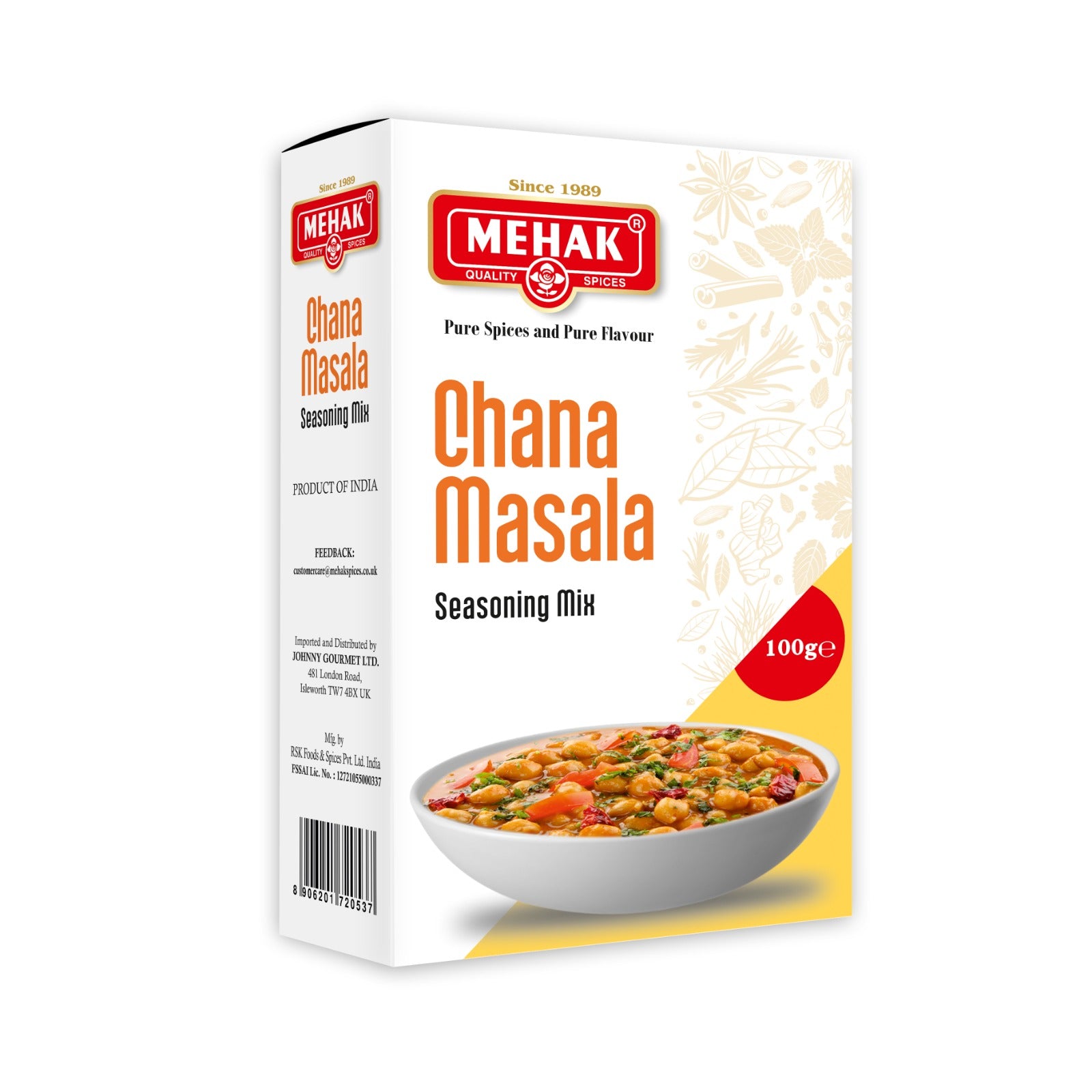 Chana Masala is a flavourful spice blend specifically crafted for preparing the popular chickpea curry. This blend typically includes a combination of many aromatic spices. It provides a balanced flavour profile that is both savoury and tangy, with warm and slightly spicy notes, perfectly complementing the earthy taste of chickpeas. Using this blended powder simplifies the process of creating the classic Chana Masala dish, ensuring an authentic and delicious result. The spices in the blend may also offer various digestive benefits.